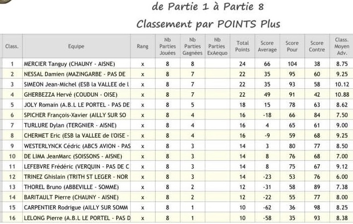 Les 16 équipes engagées se sont rencontrées au cours de 4 parties, et se retrouveront le 29 mars prochain à Chaulnes pour la troisième journée.